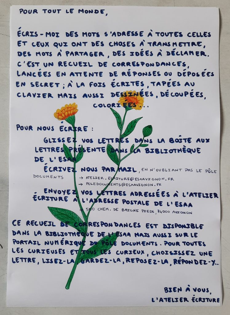Boite aux lettres de l’Atelier d’écriture